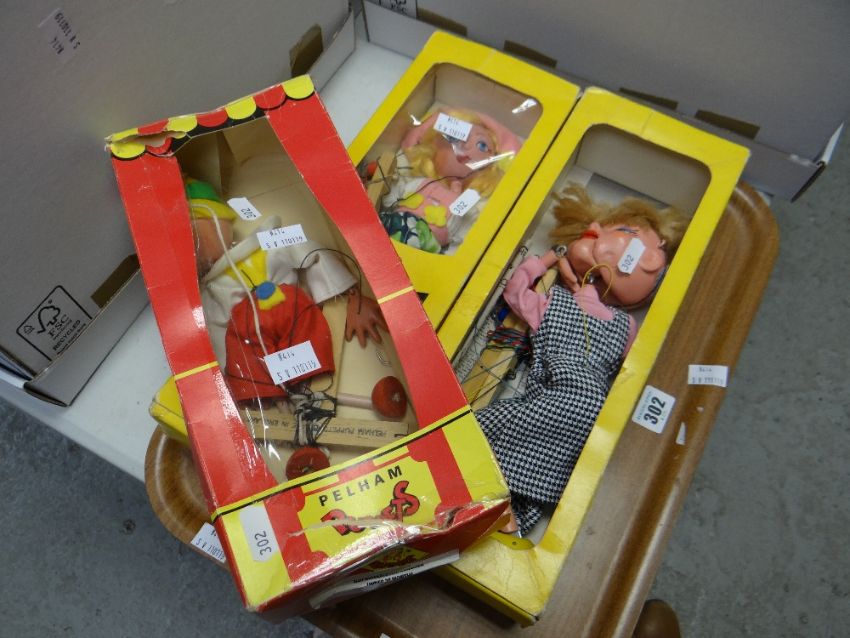 Three boxed Pelham Puppets