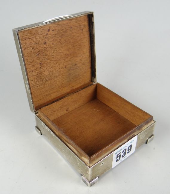 A square engine-turned silver RAF crest mounted cigarette box, Birmingham 1939