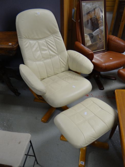 A modern swivel leather armchair & foot-stool