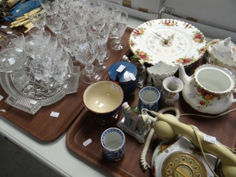 Five trays of items including glassware, loose cutlery, Royal Albert 'Old Country Roses' ETC