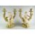 A pair of Royal Worcester figural twin candle holders in the form of lady and gentleman seated on trees upon rocky bases, typical blush decorated and with floral decorated waistcoat and dress, 25cms high, date marks for 1897