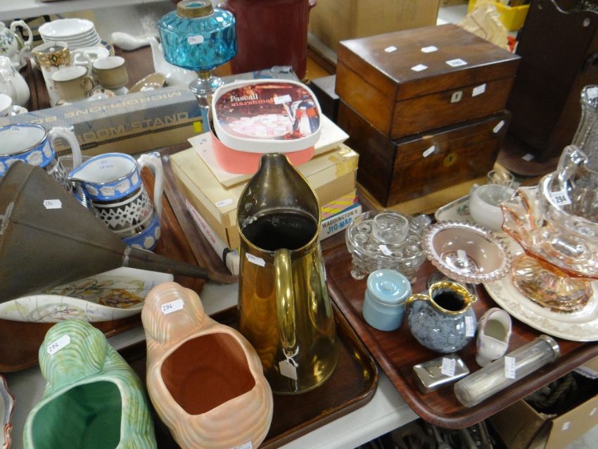 Pair of Shorter & Sons shell-form vases, a pair of silver lustre vases, vintage jigsaws, oil lamp & sundry glassware ETC