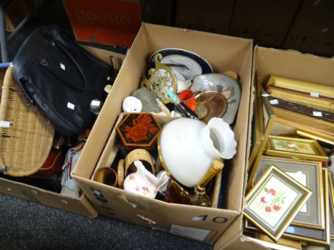 Three boxes of mixed items including pictures, prints, ornaments & household items