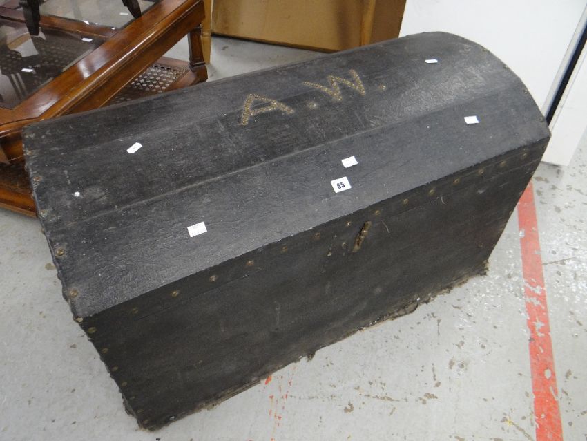 A vintage domed trunk with studded monogram 'A W' to the lid