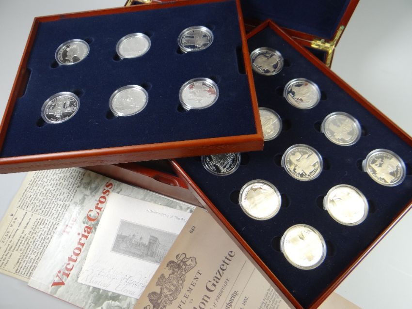 A cased set of eighteen Elizabeth II (2006) commemorative coins for Victoria Cross Awardees plus ephemera