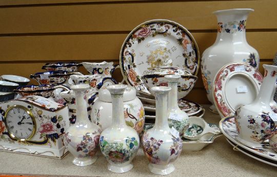 Large collection of Mason's Mandalay and other patterns including jugs, wall clock, mantel clock ETC
