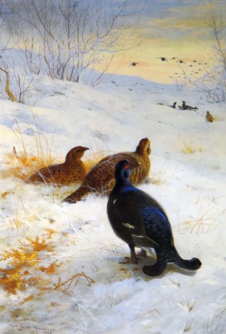 ARCHIBALD THORBURN limited edition (109/850) print - game birds in the snow with ducks in flight, 50 x 34cms