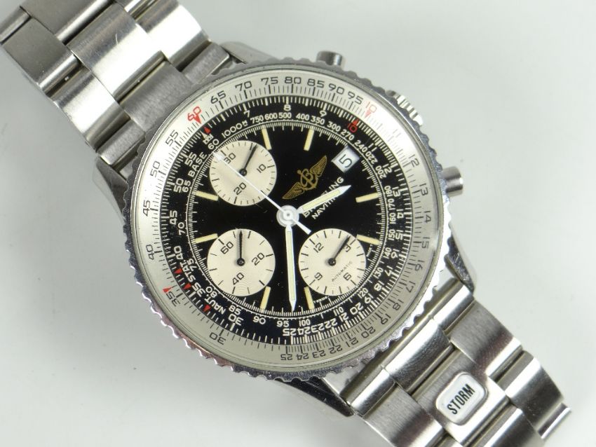 BREITLING NAVITIMER AUTOMATIC STAINLESS STEEL GENTLEMAN'S WRISTWATCH, numbered to reverse 8083 on bracelet marked "STORM." Condition Report: Good overall used condition with surface wear and light scratching.Model: Navitimer Model Ref: 81610 Year:  Circa late 80’s to mid 90’s Movement: Automatic, running Bracelet:  Aftermarket (Not Original)