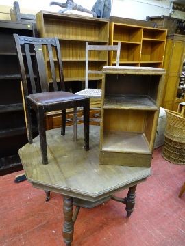 Edwardian octagonal dining table, cane seated chair and similar items