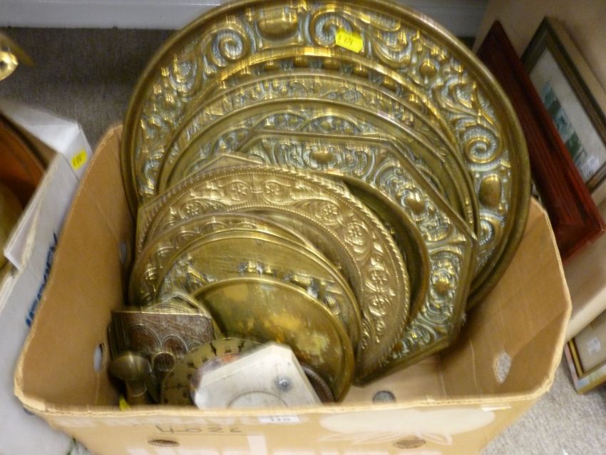 Quantity of brass chargers etc
