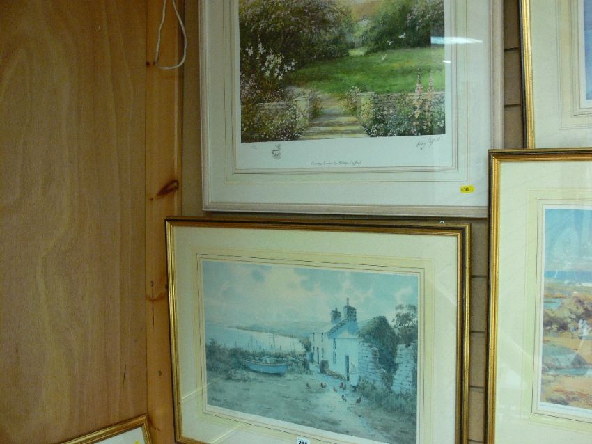 WARREN WILLIAMS ARCA limited edition (400/500) stamped print - North Wales cottage with boats in the background and lady feeding chickens and a limited edition (668/850) signed print by HILARY SCHOFIELD
