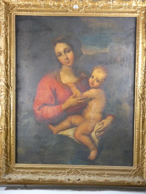 LATE 18th/EARLY 19th CONTINENTAL SCHOOL oil on canvas - mother and child and with landscape background, unsigned, 116 x 93 cms