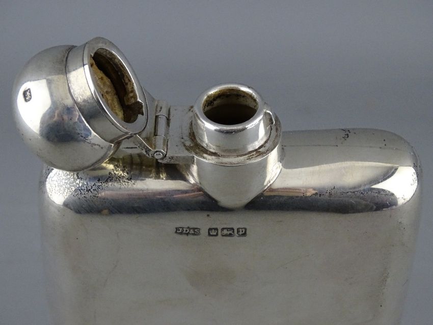 A GENT'S SILVER HIP FLASK, Sheffield 1907, 5.5 troy ozs, 14 cms long
