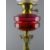 A VICTORIAN CORINTHIAN COLUMN BRASS OIL LAMP with cranberry font and tinted shade, 82 cms high overall