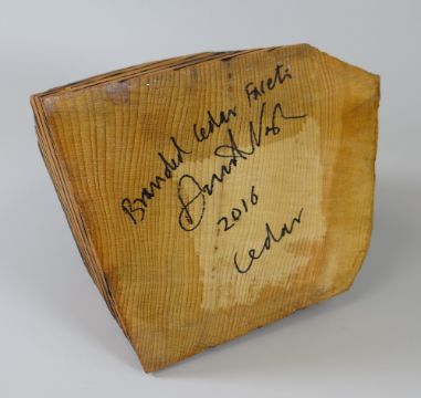 DAVID NASH cedar wood sculpture - abstract, entitled 'Branded Cedar Facet' to the base, signed and dated 2016, 22cms high