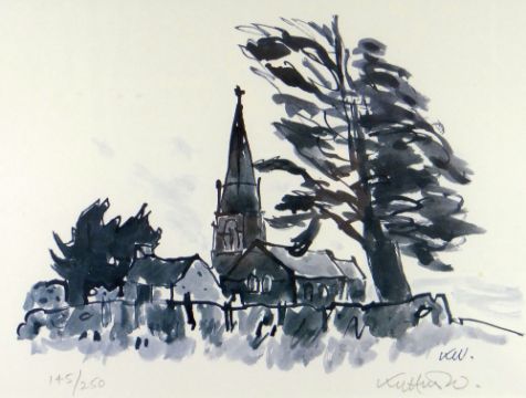 SIR KYFFIN WILLIAMS RA limited edition (145/250) print - an Anglesey church, signed fully in pencil, 24 x 32cms (framed and glazed)