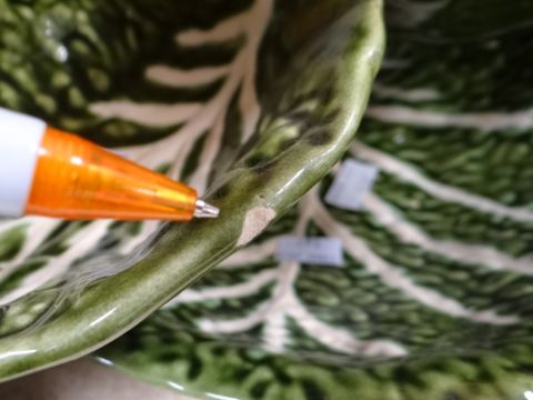 A small parcel of modern cabbage ware decorated serving bowls Condition reports provided on request by email for this auction otherwise items purchased `as seen` Two bowls have chips, there is crazing to most and the serving spoon is missing from the tureen.