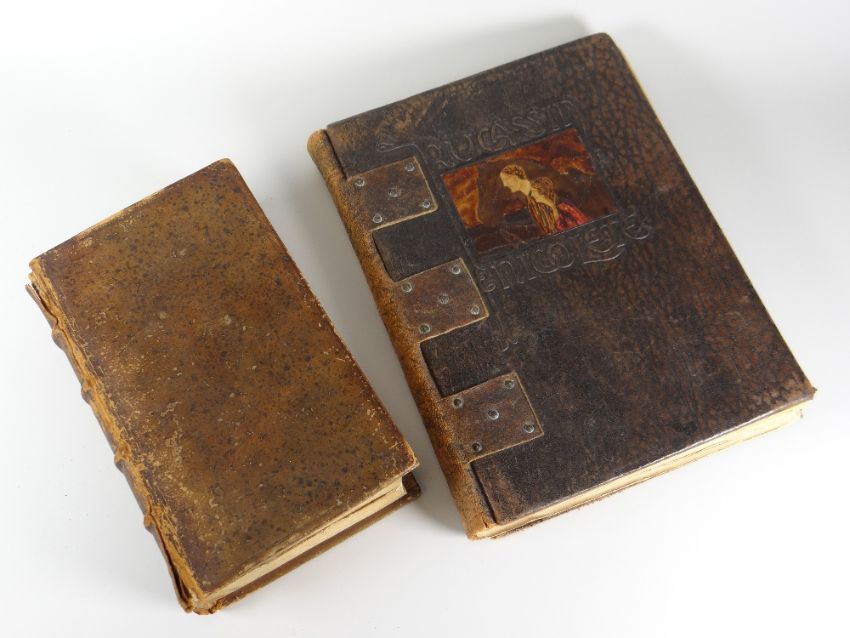 A 1683 volume of Ovidius Naso Roman poetry and a volume of Aucassin and Nicolete bound in the Arts & Crafts style
