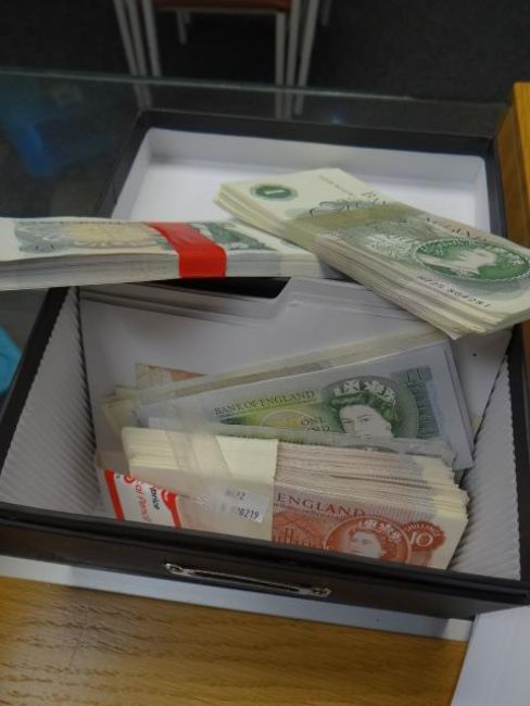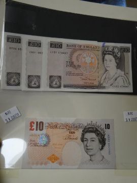 Approx. thirty folders and a filing box of twentieth century British bank notes collected by an enthusiast, mainly Queen Elizabeth II but also earlier together with various earlier twentieth century signed cheques Condition reports provided on request by email for this auction otherwise items purchased `as seen`some of the folders or sheets contain more than three bank notes