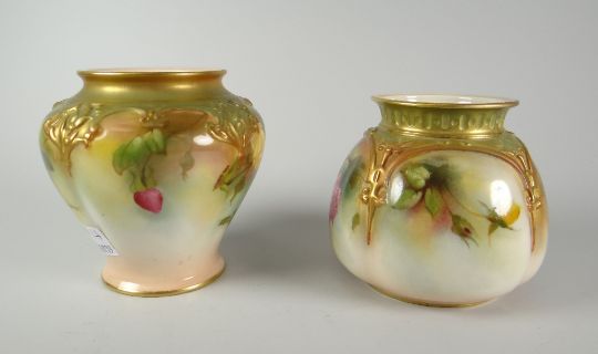 Two Royal Worcester porcelain pot-pourri vases (neither with covers), both typically decorated with roses, 8cms / 10cms