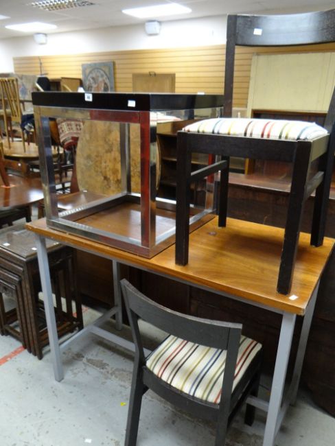 A parcel of furniture to include desk, chairs and chrome and glass table