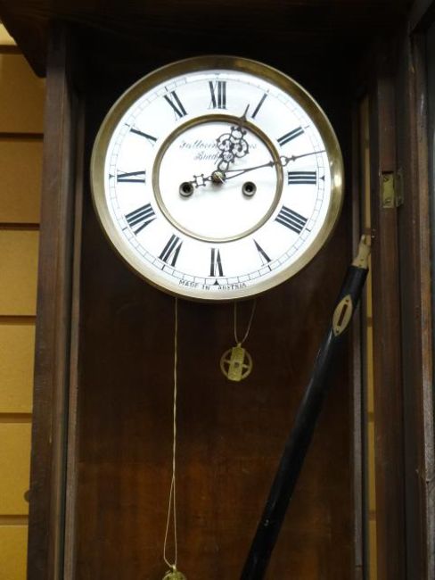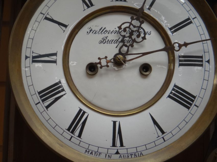 An antique Vienna wall clock with white enamel dial bearing Roman numerals
