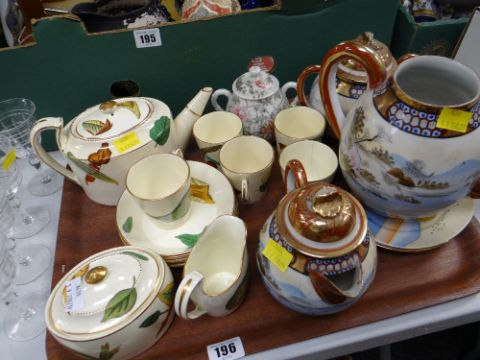 Tray of teaware including vintage leaf decorated teaset and Chinese export ware