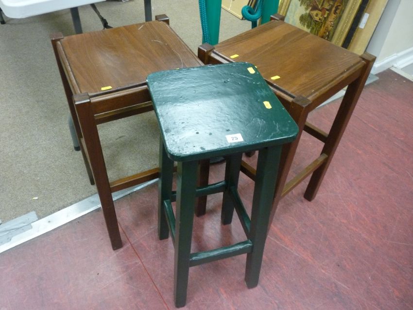 Pair of modern breakfast bar stools and a green painted stool