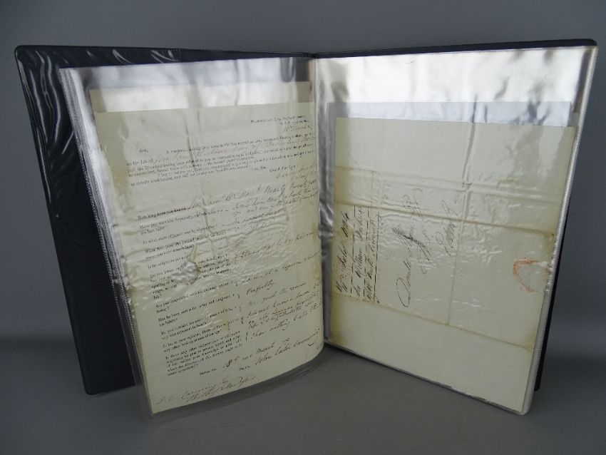 Album of mainly handwritten letters and correspondence, early to late 19th Century, with postmarked and cancellation envelopes, most displaying penny red stamps