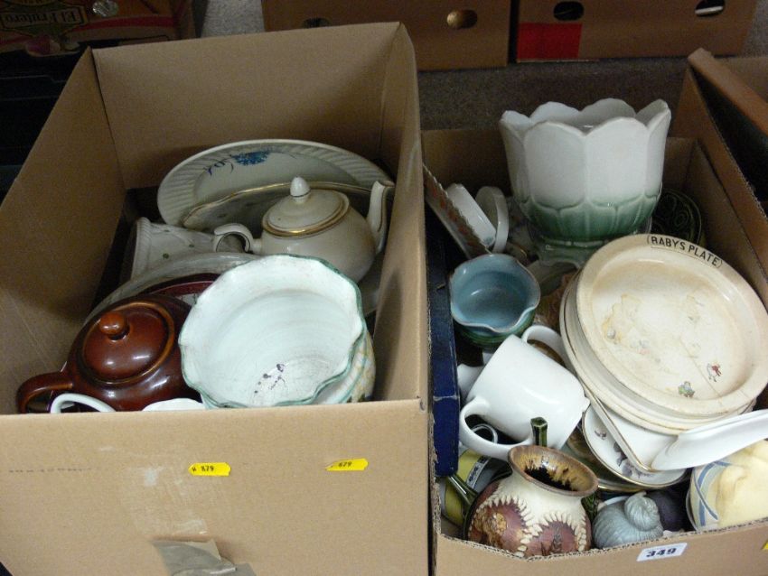 Two boxes of mixed household crockery and china