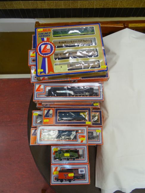 Large parcel of boxed Lima 00 gauge engines and rolling stock etc