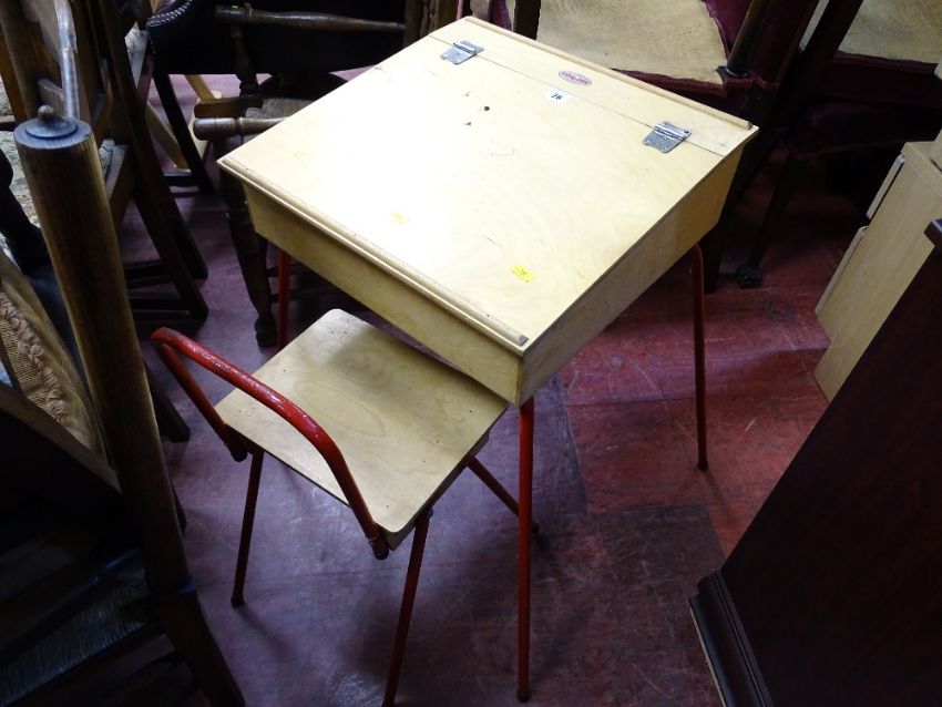 Vintage Raytel child's wooden and metal school desk with chair