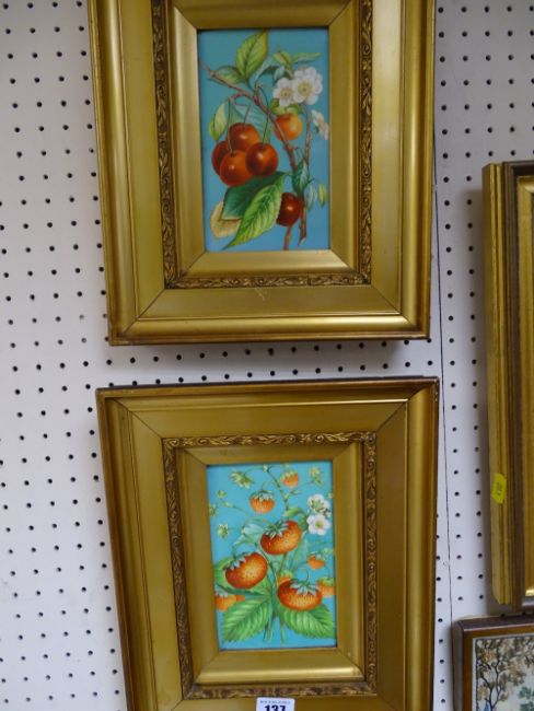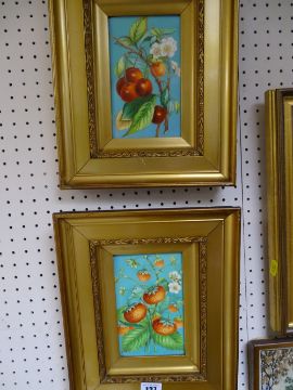 Pair of attractive framed paintings on porcelain of fruit