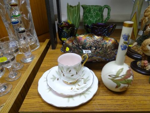 Three items of carnival glassware, Sylvac pottery, Royal Worcester, Royal Albert 'Braemar' trio
