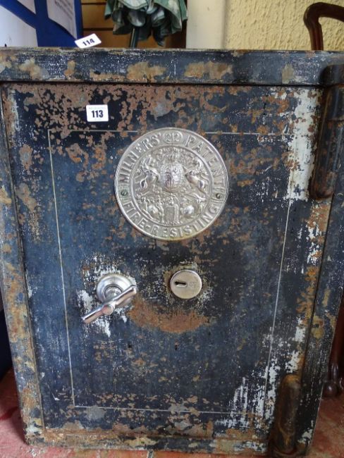 Substantial safe with 'Milners Patent Fire Resistant 212' plaque