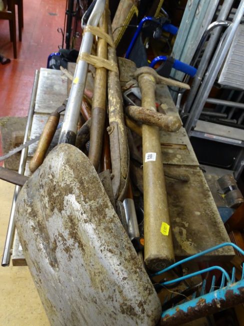 Parcel of long handled garden tools etc