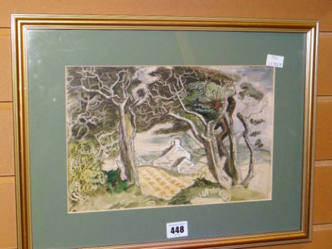 TWENTIETH CENTURY WELSH SCHOOL mixed media - unknown artist preliminary drawing of a farm, windswept trees and lane, entitled verso 20 x 29cms