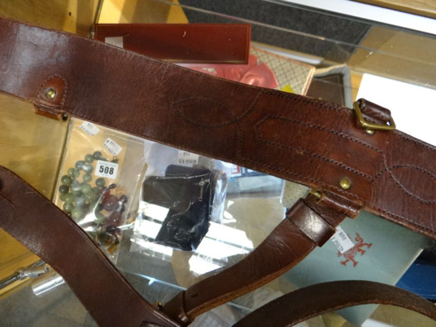 Two early / first half twentieth century period Sam Browne belts, one with cross belt with attached whistle, the attached EMCA City Whistle fist appears in 1922