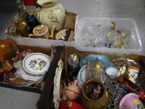 Four crates of glass and china including Portmeirion retro coffee pots ETC