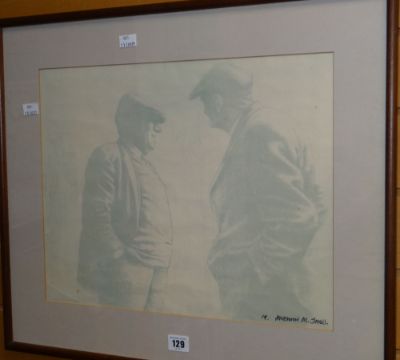 ANEURIN M JONES print - two farmers, signed, 34 x 43cms