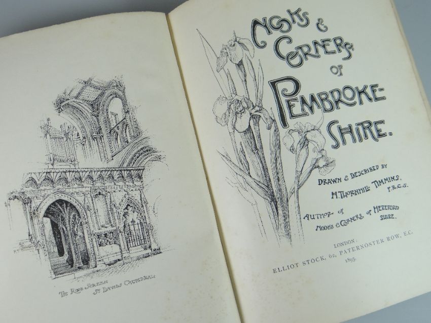 Volume of Timmins H T 'Nooks & Corners of Pembrokeshire', London 1895 Condition reports provided on request by email for this auction otherwise items purchased `as seen`The spine shows signs of wear so do the corners of the book.Some of the pages are loose and have come away from the binding.There is also foxing to most of the pages.