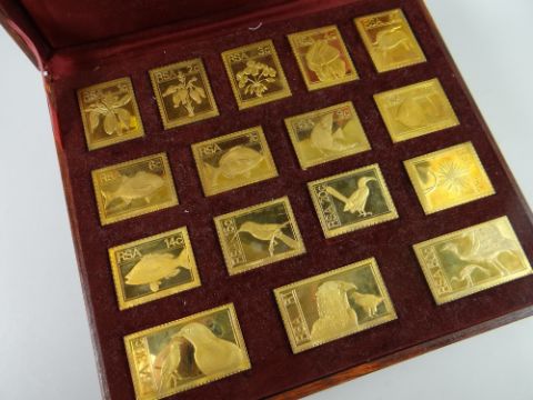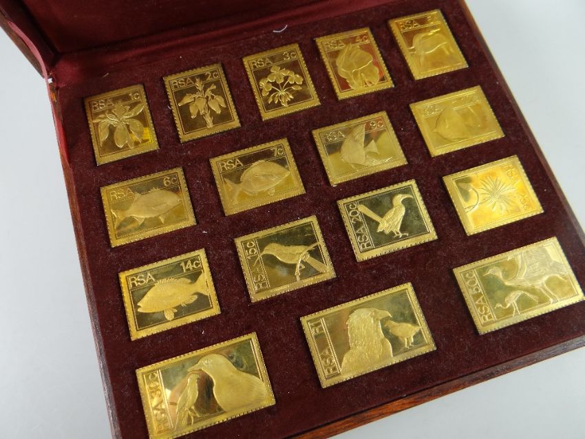 A wooden cased set of sixteen 1974-1975 Africana commemorative mint replica edition stamps with certificate