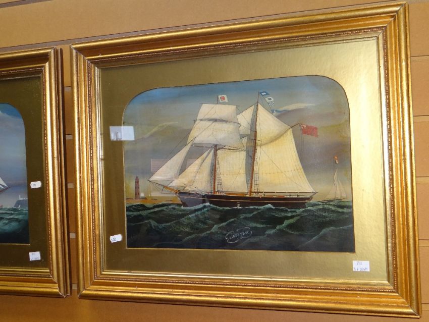 NINETEENTH CENTURY MARITIME SCHOOL pair of gouache ship portraits - entitled 'Lady May' and 'Linda Jane', 29 x 42cms Condition reports provided on request by email for this auction otherwise items purchased `as seen`slight paint discoloration on both pictures around the mount