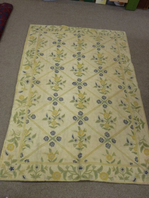 A KASHMIRI WOOLLEN CHAIN HAND STITCHED RUG, with all over muted flowers, 170 x 118 cms