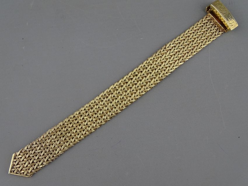 A NINE CARAT GOLD WOVEN LINK BRACELET, 2 cms wide, 50 grms, hallmarked Birmingham 1965
