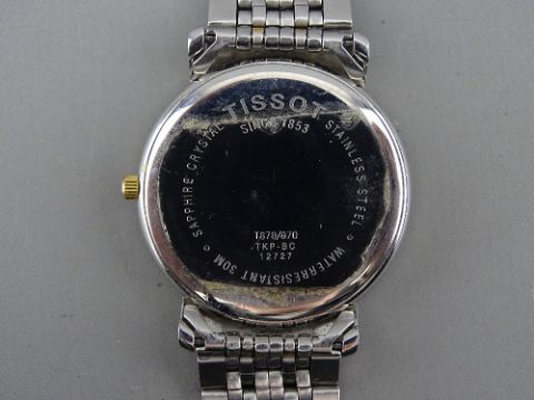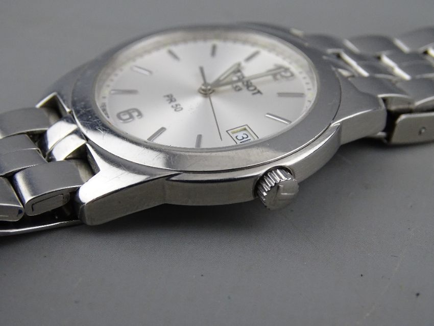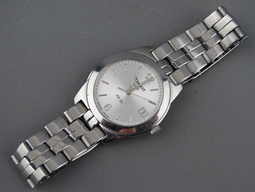 TWO GENT'S TISSOT WRISTWATCHES - a PR50 automatic calendar watch with incorporated bracelet and a Tissot calendar wristwatch with twin colour eight row bracelet