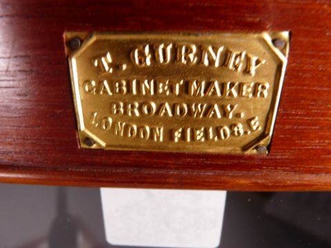 A THOMAS GURNEY MAHOGANY COLLECTOR'S CABINET of twenty six drawers with glazed front door, all drawers open topped with card bases and bone knobs, the top six with mahogany dividers containing various glass microscope slides plus an undivided quantity in drawer seven, the drawer interior with gilt metal 'T Gurney Cabinet Maker' plaque, 44.5 cms high, 35 cms wide, 24.5 cms deep (re-polishing required), circa 1890
