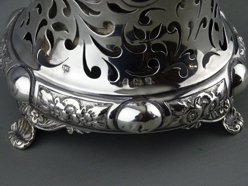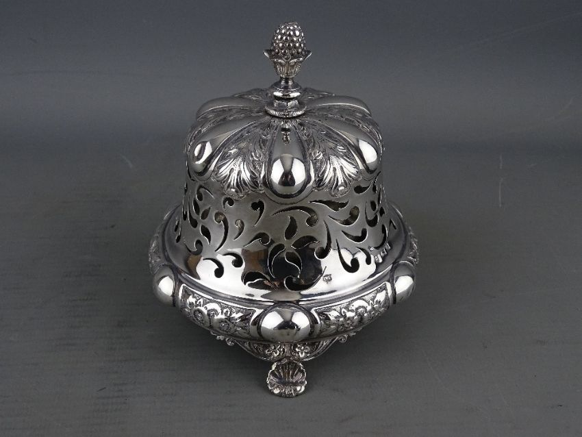 A FINELY PATTERNED CIRCULAR SILVER DESK BELL, 8.7 troy ozs gross, Birmingham 1900