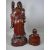 A WELL CARVED CHINESE WOODEN FIGURE OF SHOU LAO and one other, the Daoist God with his staff in one hand and a peach in the other, 41 cms high (shrinkage split to front), the other of a smiling seated man holding a bat upon a knotty wood stand, 18 cms high overall