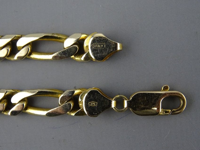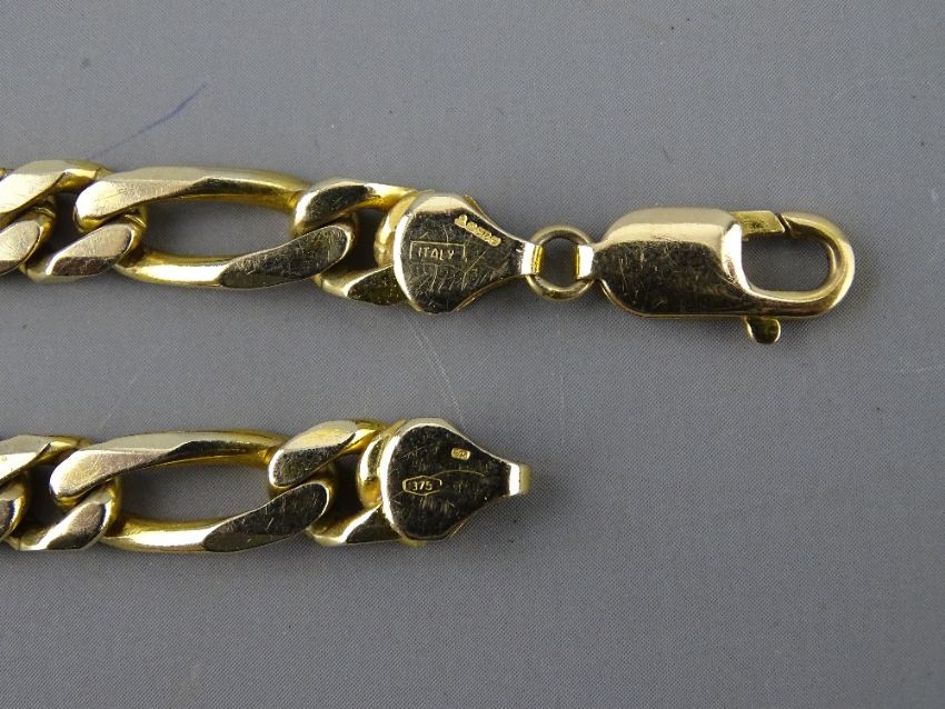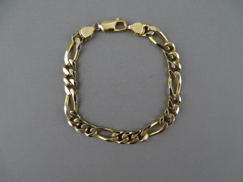 A NINE CARAT GOLD FIGARO STYLE LINK BRACELET, 21.4 grms